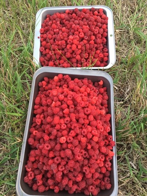 a few spare raspberries from the trillions in my Sister's enormous patch!...